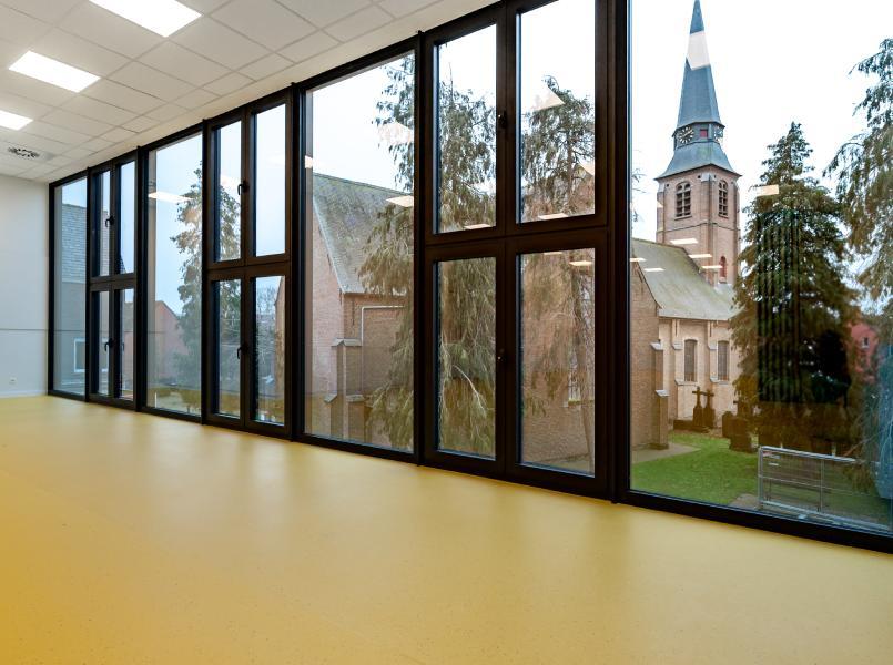 Primary school De Sprong is situated in the centre of the village of Waardamme next to the church. The Sint-Blasius parish church with cemetery is listed as a protected monument on the architectural heritage inventory. Together with the nearby former presbytery on the Dorpsplein and the existing cemetery wall between the church and the school site, it forms a protected village sight. Architecten Groep III from Bruges integrated the new building volume of the school optimally into this historical context. Oxfloor-Multistep from Kortrijk was responsible for installing the durable Gerflor floors in the classrooms and the sports hall.